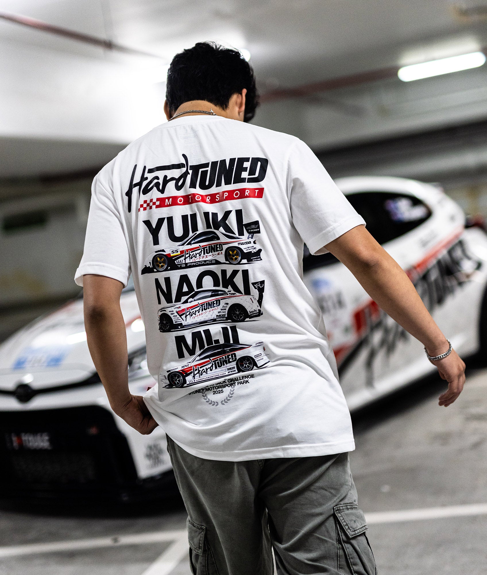 Featuring Hardtuned's three powerhouse drivers - Yuuki Kamakura, Naoki Nakamura, and Miji Takagi, these tee were a sellout at the event. Now's your chance to feel a part of this iconic team.